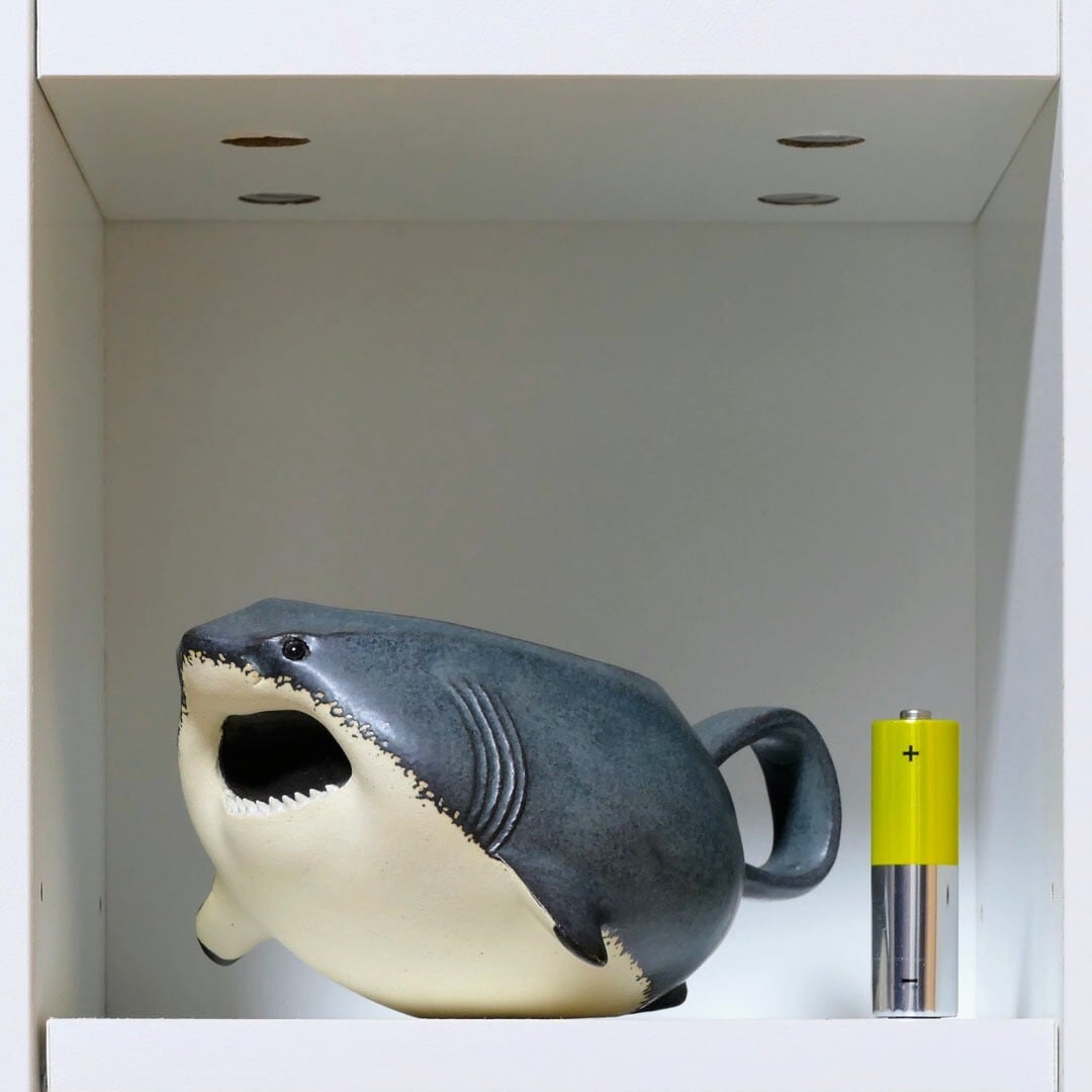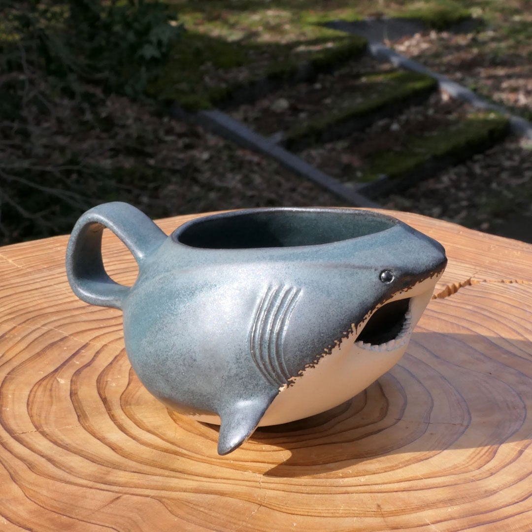 ホホジロザメ形のマグカップです。