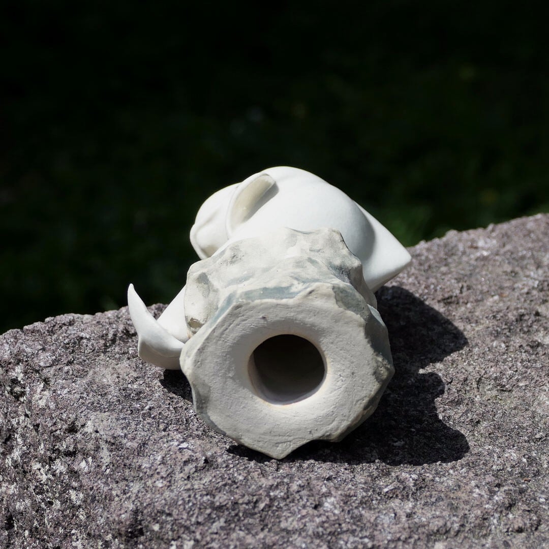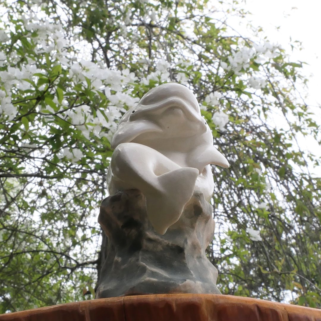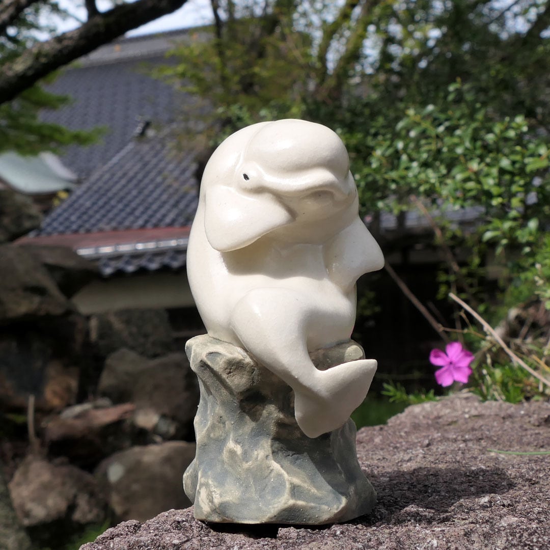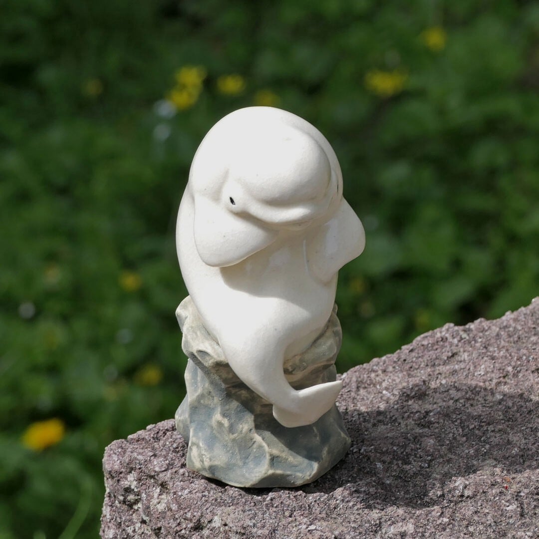 考える人をベルーガにアレンジした、陶製の彫刻です。