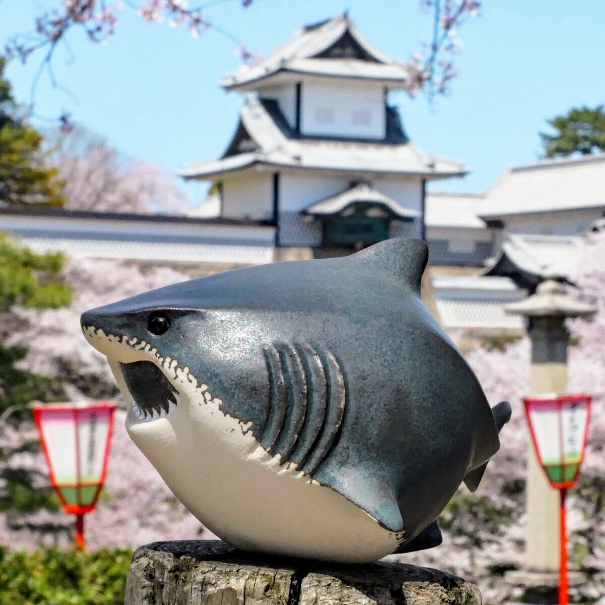 ホホジロザメの陶製置物です。